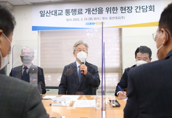 이재명 경기도지사는 15일 오후 김포시 감암로 일산대교㈜에서 열린 ‘일산대교 통행료 개선을 위한 현장간담회’에서 “한강다리 중 유일하게 통행료를 낸다는 것은 너무 불평등하고 불공정한 것”이라며 “경기도가 대안을 강구하겠다”고 강조했다.