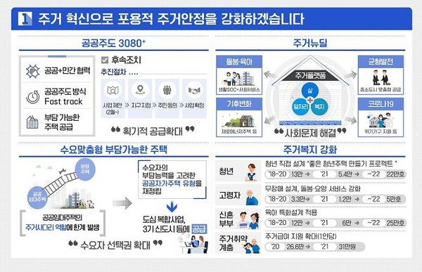 국토부는 올해 공적임대 20만9000호, 공공분양 3만5000호 등 총 24만4000호를 공급한다는 계획이다. 서울 내 공공재개발·재건축 선도사업으로 7000호를 선정하고 3기 신도시 사전청약으로 내년까지 6만2000호를 확충한다.