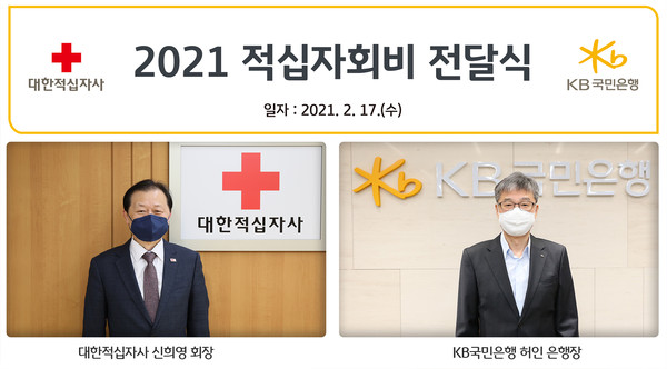 [한스경제=김형일 기자] KB국민은행이 17일 대한적십자사에 적십자회비 3억원을 기부했다고 밝혔다. 기부금 전달 행사는 신종 코로나바이러스 감염증(코로나19)으로 비대면으로 진행됐다.
