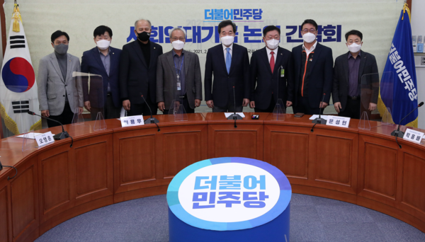 이낙연 당 대표는 “금융권 노사가 힘을 합쳐 사내복지기금 일부를 사회연대기금에 출연할 것을 검토하신다고 들었다”며 “정부에서도 노사의 선한 의지를 뒷받침하고 자발적 기부문화의 확산을 돕도록 인센티브 강화 등 제도적 정비를 서두르겠다”라고 말했다.