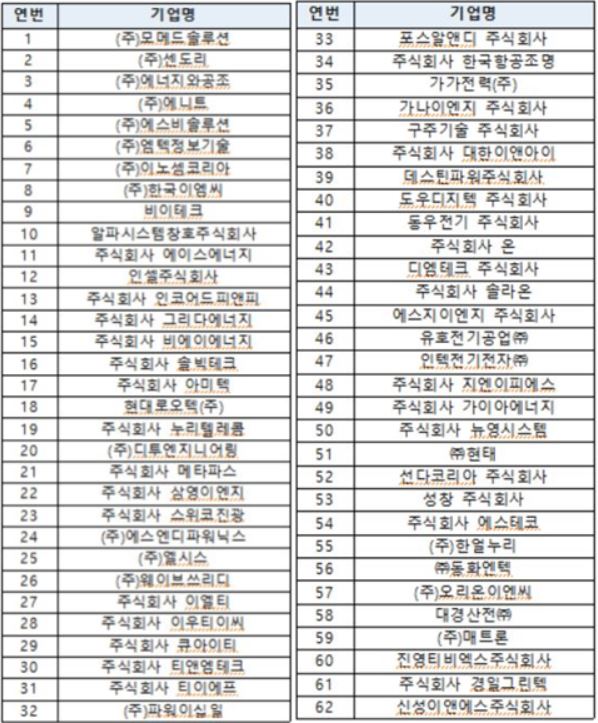 30일 산업통상자원부가 에너지산업 생태계 조성과 기술혁신을 주도할 에너지특화기업을 지정을 위해 기술수준과 경영역량 등을 종합적으로 평가해 최종 62개사를 선정·발표했다.