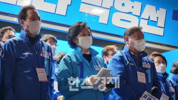 조정훈 의원은 "(민주당이) 혼을 나더라도 서울시민들에게 혼나고 책임을 지는 모습을 보여야지, 오세훈 후보가 (혼을 내는 역할을) 해서 되겠느냐"며 "과연 오 후보가 혼을 낼 자격이 있느냐"고 목소리를 높였다. 일부 유권자들은 조 의원의 발언에 환호하며 연신 '박영선' 구호를 외쳤다.
