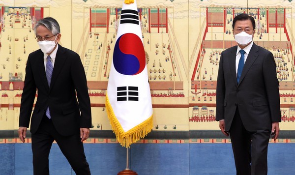 문재인 대통령도 14일 청와대에서 열린 주한대사 신임장 제정식 후 열린 환담회에서 일본 원전오염수 해양 방류에 대해 우려를 표했다. 신임장 제정식에는 아이보시 일본대사, 페데리꼬 알베리토 꾸에요 까밀로 주한 도미니카공화국 대사, 아리스 비간츠 주한 라트비아 대사가 참석했다.