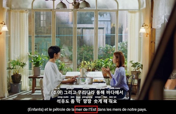 11일 사이버 외교 사절단 반크에 따르면 넷플릭스는 한국 드라마 ‘하백의 신부’의 프랑스어 자막에 동해를 일본해로 표기했다.