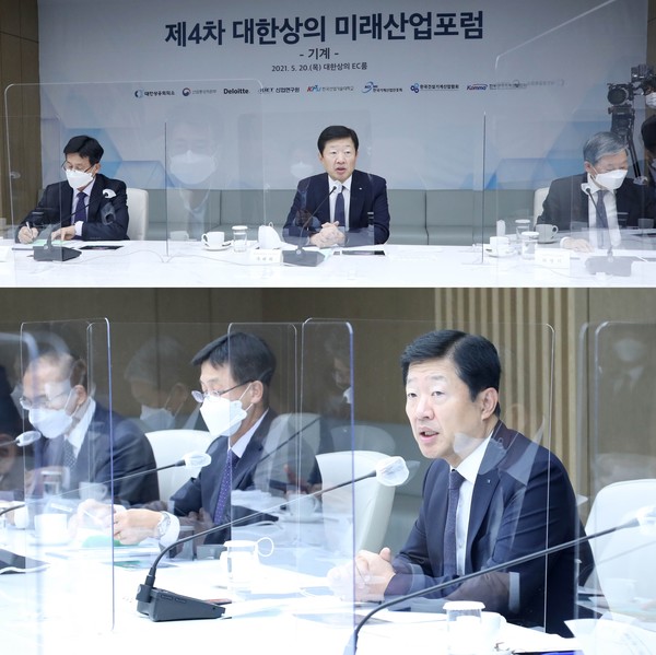 대한상공회의소(대한상의)는 20일 ‘제4차 미래산업포럼’을 개최하고 국내 기계 산업의 미래대응 실태 점검에 나섰다. 이번 포럼의 참석자들은 국내 기계 산업 디지털・친환경 산업구조로의 전환에 공감을 표했다.