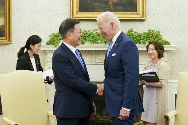 [한스경제=김동용 기자] 문재인 대통령이 조 바이든 미국 대통령과 첫 대면 정상회담에서 굳건한 한미동맹을 재확인했을뿐 아니라 백신과 미사일 사거리제한 폐지 등 전방위 분야에서 의미있는 성과를 거뒀다. 특히 군사 협력에 무게가 실려있던 기존 한미동맹이 기술·경제·환경 분야까지 지평을 넓혀 글로벌 동맹으로 발전했다는 평가가 나온다.
