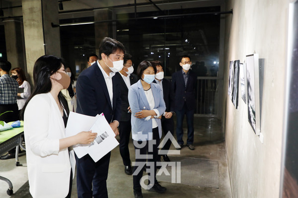 [한스경제=(수원)김두일 기자] 수원시의회는 26일 조석환 의장을 비롯해 장정희 의원, 김호진 의원, 이희승 의원이 권선구 델타플렉스(수원산업단지) 소재 고색뉴지엄에서 진행된 ‘청년터전’ 온라인 전시회 촬영 현장을 방문했다고 밝혔다.