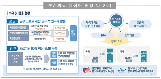 건강보험 등 공공데이터와 병원 임상 등을 포괄하는 보건의료 데이터는 의료기술 혁신이나 바이오헬스 산업에서 활용 가치가 높지만, 낮은 데이터 표준화·품질관리, 개인정보 침해 우려 등으로 실제 활용도는 낮은 실정이다.
