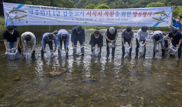 한편 대전지역 멸종위기종 살리기 사업은 금강유역환경청을 비롯해 대전시, 대전충남생태보전시민모임, 대전환경운동연합, 순천향대학교 멸종위기어류복원센터, 천리포수목원, 한국타이어 등이 참여하고 있다.