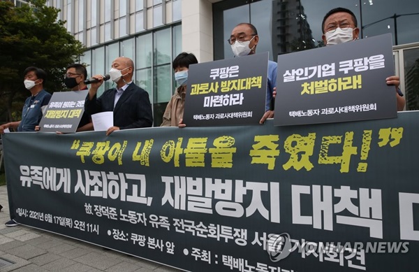 쿠팡은 미국 나스닥 시장에 상장했을 정도로 빠르게 성장했지만 '로켓배송' 등 쿠팡만의 장점은 노동자에게 과도한 업무를 강요한다는 지적은 꾸준히 제기됐다. 지난해 10월 12일 경북 칠곡의 쿠팡 물류센터 직원 장덕준씨가 숨지는 사고가 발생했고 근로복지공단은 장씨 죽음이 업무와 관련이 있다고 판단해 산업재해로 인정하기도 했다.