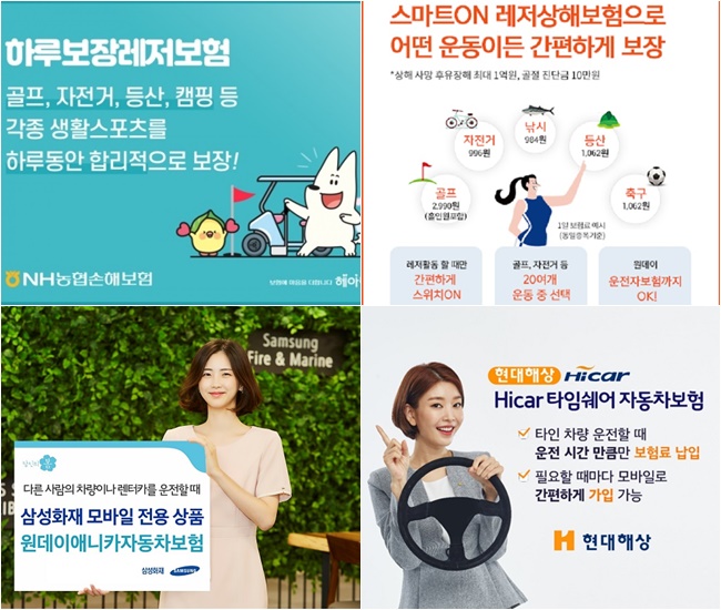 렌터카나 타인 소유 자동차를 운전하는 경우 이를 보장하는 원데이 자동차보험부터 ▲서핑 ▲캠핑·낚시 ▲등산 ▲골프 등 레저활동 사고를 보장해주는 미니보험 그리고 차량 무상점검 서비스까지 놓치면 아쉬울 수 있는 보험 상품과 서비스를 모아봤다.