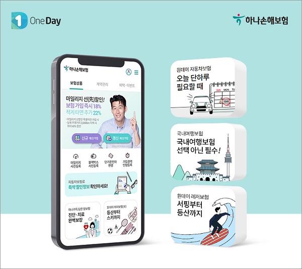 하나손해보험의 원데이자동차보험은 승용차로 한정됐던 가입 차종을 업계 최초로 외제차, 승합차, 화물차(1톤이하), 장기렌터카(1년이상 대여), 법인차로 확대했다.