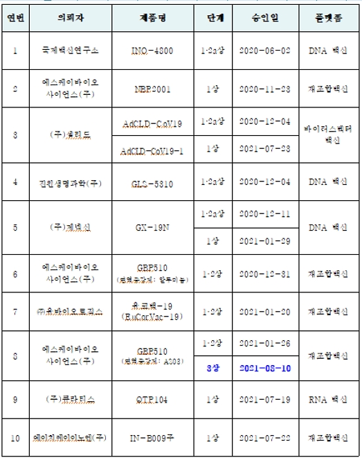 식약처는 “지난 9일 열린 전문가 자문회의 결과 3상 비교임상 진입이 가능한 것으로 결론을 내렸으며, 대조백신의 부작용으로 알려진 '혈전증이나 면역혈소판감소증 등 자가면역질환자'는 임상시험에서 제외해야 한다는 의견이 제시됐다”고 밝혔다.