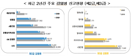 13일 질병관리청에 따르면 지난해 국가감염병감시시스템(National Infectious Disease Surveillance System)을 통해 신고된 법정감염병 현황을 분석‧정리한 이 같은 내용의 ‘2020 감염병 감시연보’를 펴냈다.