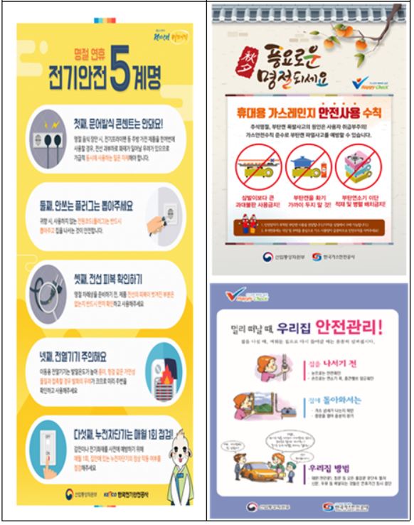 추석 연휴기간 동안 전기안전공사와 가스안전공사는 비상대응반(전기 1588-7500, 가스 1544-4500)을 운영, 국민들이 전기나 가스시설 고장 등으로 겪는 불편을 조속히 해결할 수 있도록 지원한다.