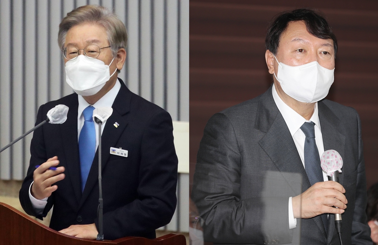 이를 근거로 정치권 일각에선 윤 전 총장과 이 지사가 지지율 측면에서는 '적대적 공생관계'라는 표현이 나왔다. 서로의 진영에서 '1위 주자'들인 만큼 '한 쪽이 무너지면 다른 쪽도 무너질 가능성이 있다'는 분석이었다.