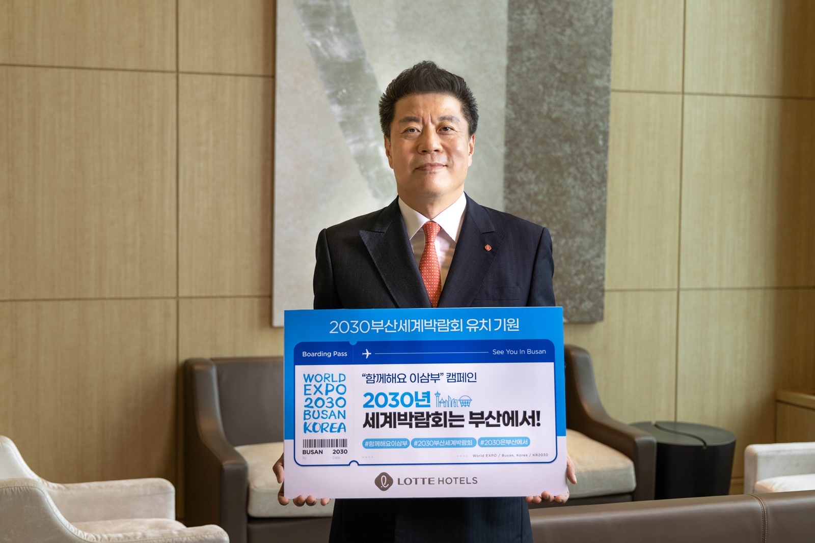 서 대표이사는 "2030 세계박람회는 대규모 국제행사 개최 경험이 풍부하고 글로벌한 역량이 가득한, 대한민국의 전통과 현대를 모두 가지고 있는 눈부신 도시 부산에서 꼭 열려야 한다"며 "부산이 세계적인 도시가 되기 위해 반드시 실현돼야 할 필수 과제라고 생각하고, 부산롯데호텔 모든 직원이 좋은 소식이 들려올 날을 기다리며 서비스 역량을 강화하는데 주력하겠다"고 말했다.