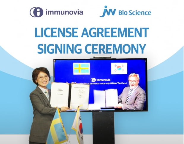 패트릭 달렌 이뮤노비아 대표는 “이뮤노비아의 독립적인 지적재산권을 확보하기 위한 이번 계약이 체결돼 기쁘게 생각한다”며 “앞으로 JW바이오사이언스와 췌장암 조기 진단 서비스 및 키트의 상업화를 위한 개발 협력도 검토하겠다”고 했다.