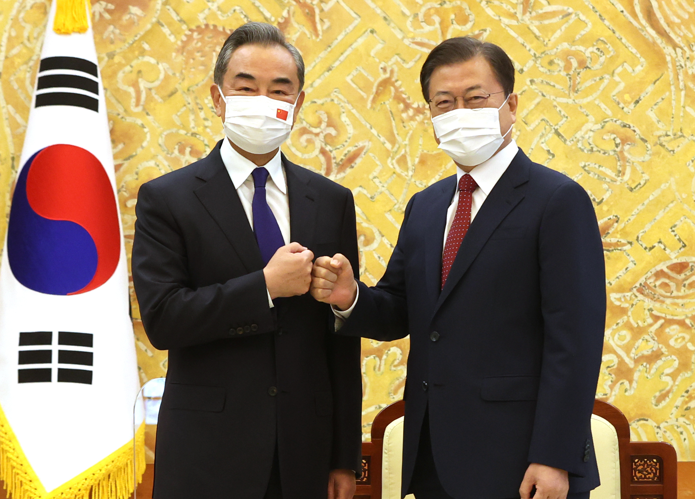 한편 이날 문 대통령의 왕이 부장 접견에 우리 측에서는 정의용 장관과 서훈 국가안보실장·김형진 국가안보실 제2차장이, 중국 측에서는 싱하이밍 주한대사와 첸커밍 상무부 부부장 등이 동석했다.