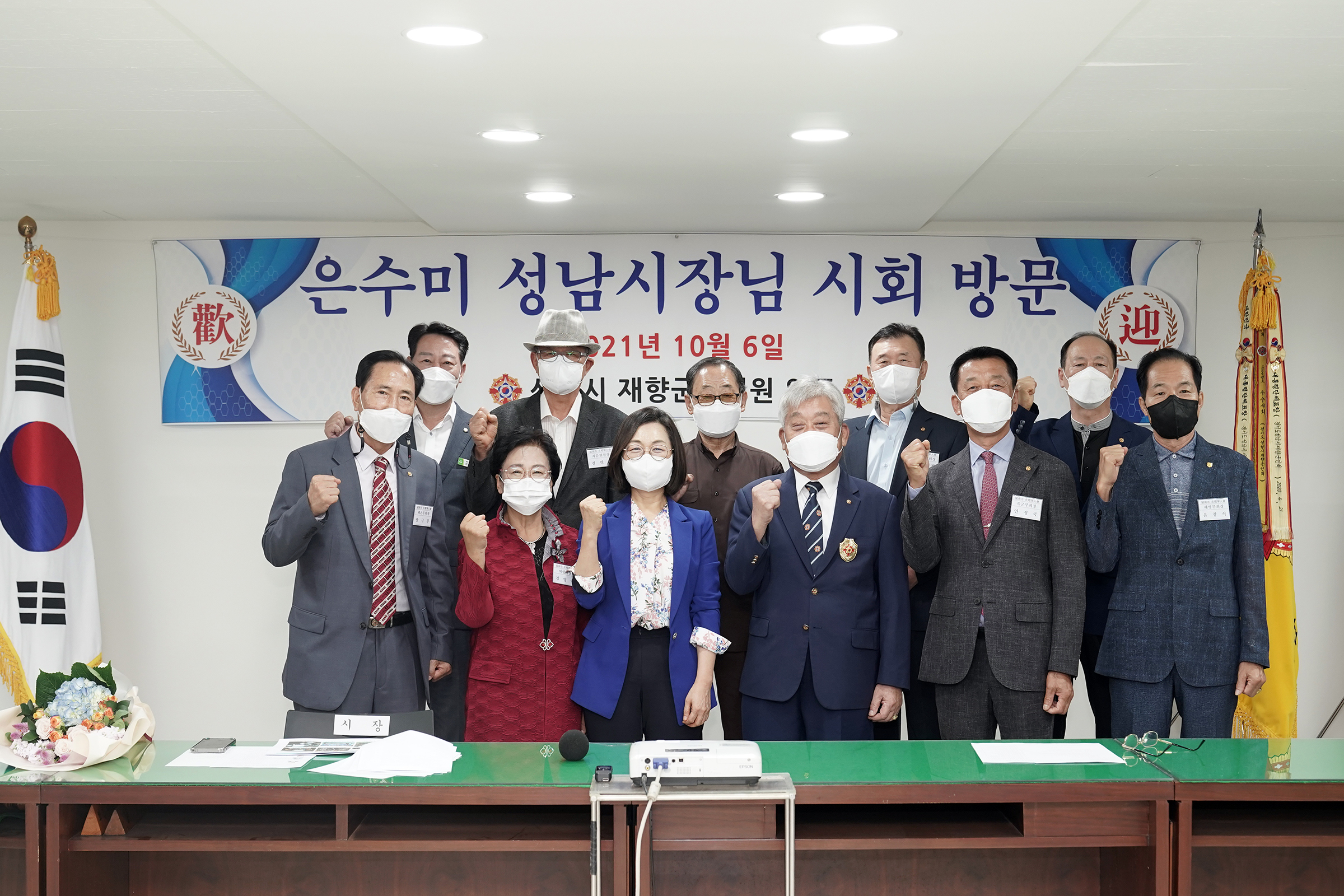 [한스경제=(성남)김두일 기자] 성남시는 은수미 시장이 10월 6일 제69주년 재향군인의 날(10월 8일)을 기념, 금광동에 위치한 향군회관에 방문해 우건식 재향군인회장을 비롯한 9명 임원들을 격려했다고 밝혔다.