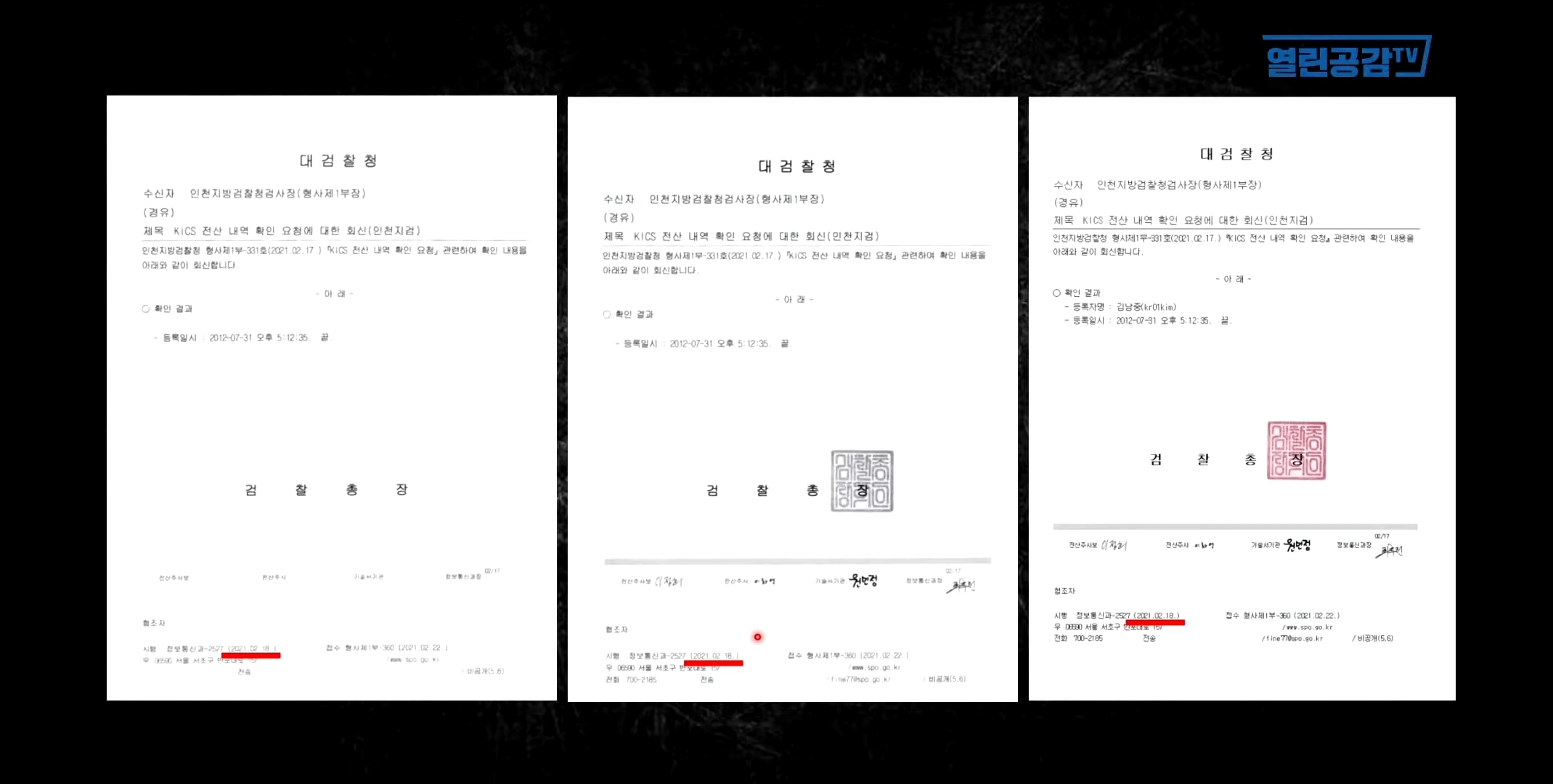 이상하게 여긴 박씨는 대검에 다시 한 번 같은 내용의 정보공개를 청구했고, 이번에는 검찰총장 직인은 찍혀 있지만 수사 담장자 이름이 적혀 있지 않은 문서를 확인했다. 박씨는 또 한 번 정보공개 청구를 했고 이번에는 수사관 이름과 검찰총장 직인이 모두 포함된 공문서를 받을 수 있었다. 제대로 된 공문서를 받기 까지 세 번이나 같은 내용으로 정보공개 청구를 한 것이다.