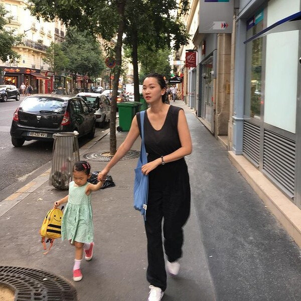 사진 속 장윤주는 파리에서 딸 리사와 함께 길거리를 걷고 있는 모습이다.