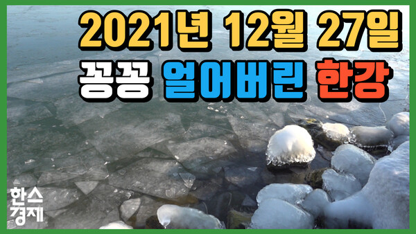 [한스경제=김민호 기자] 매서운 바람과 함께 기온이 영하 12.5도까지 떨어진 27일 서울 여의도 한강공원 강물이 얼어 있다. 27일 낮부터 점차 추위가 풀리겠지만, 31일을 기점으로 다시 한파가 찾아오면서 동장군이 기승을 부릴 것으로 보인다.