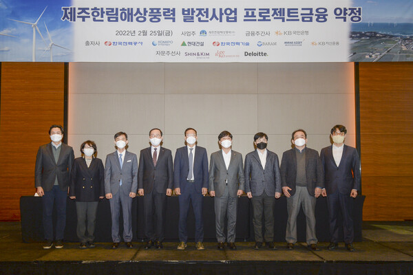 [한스경제=김동용 기자] 한국중부발전은 발전회사 최초로 해상풍력 운영 및 유지보수(O&M)을 수행하는 ‘제주한림해상풍력발전사업’의 본격적 사업추진을 위한 ‘프로젝트금융 약정체결식’을 가졌다고 25일 밝혔다.