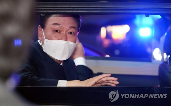 윤석열 당선인이 10일 오전 서울 서초구 자택을 나서고 있다. /연합뉴스