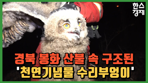 [한스경제=김민호 기자] 6일 새벽 경북 봉화군 산불 진화 현장에서 천연기념물 수리부엉이가 구조됐다. 박준호 진천산림항공본부 공중진화대원은 6일 <한스경제>에 "새벽까지 계속되는 산불 진화 과정 중 어미가 도망가 홀로 남겨진 어린 수리부엉이를 발견했다"라며 "새끼 수리부엉이가 불이 있는 곳으로 도망가는 걸 구조했다"라고 밝혔다. 구조된 수리부엉이는 야생동물보호소로 넘겨졌다.