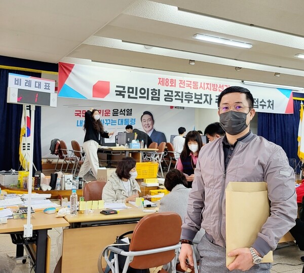 8일 성남시 공익 제보자인 이승균 씨가 소속 성남시의회 비례대표 후보로 국민의힘에 공천을 신청했다.
