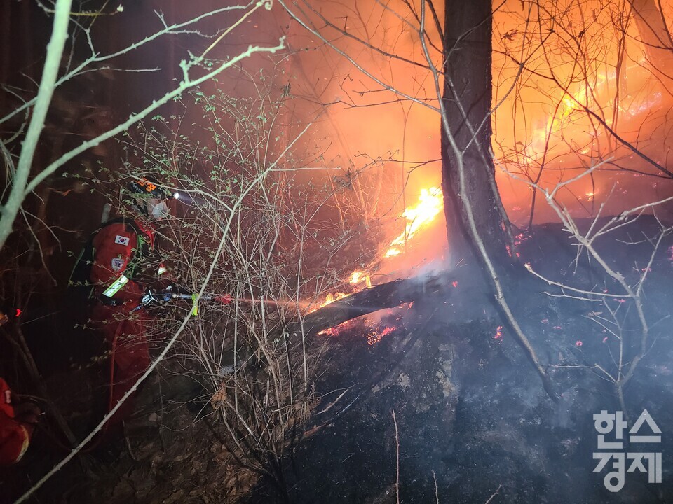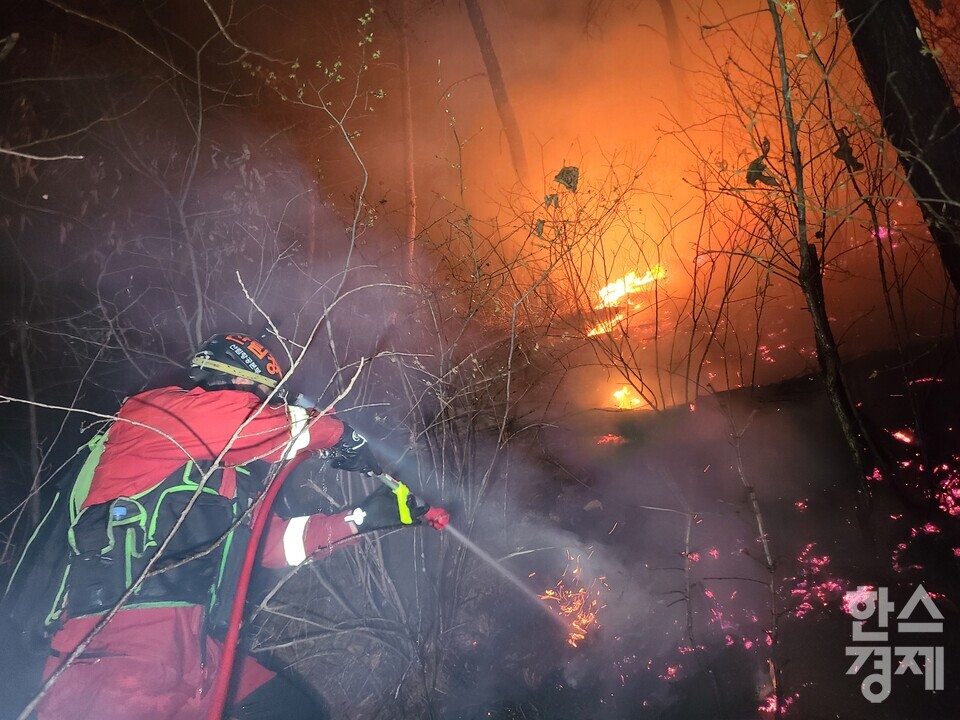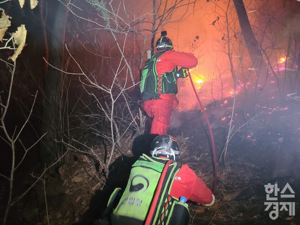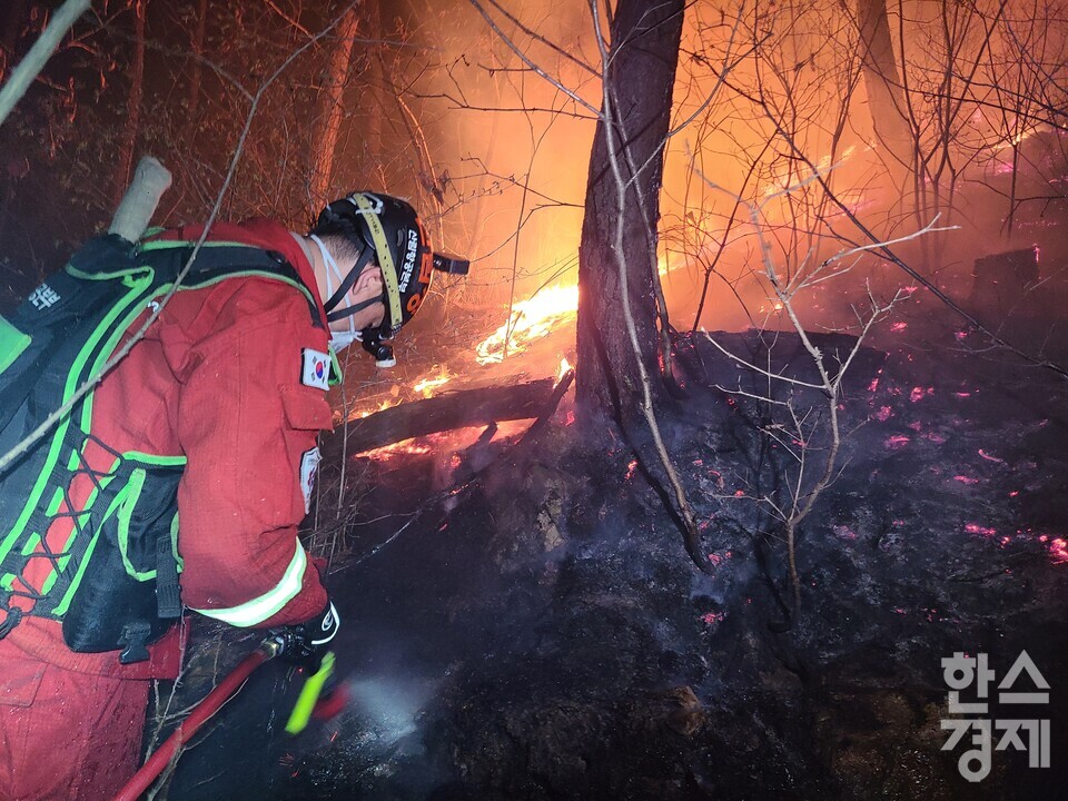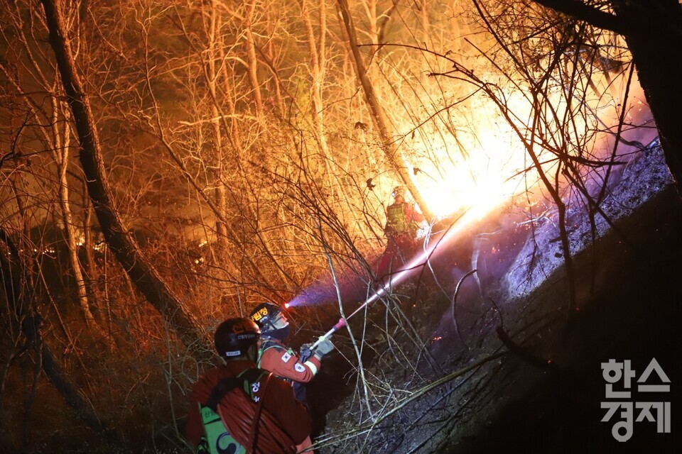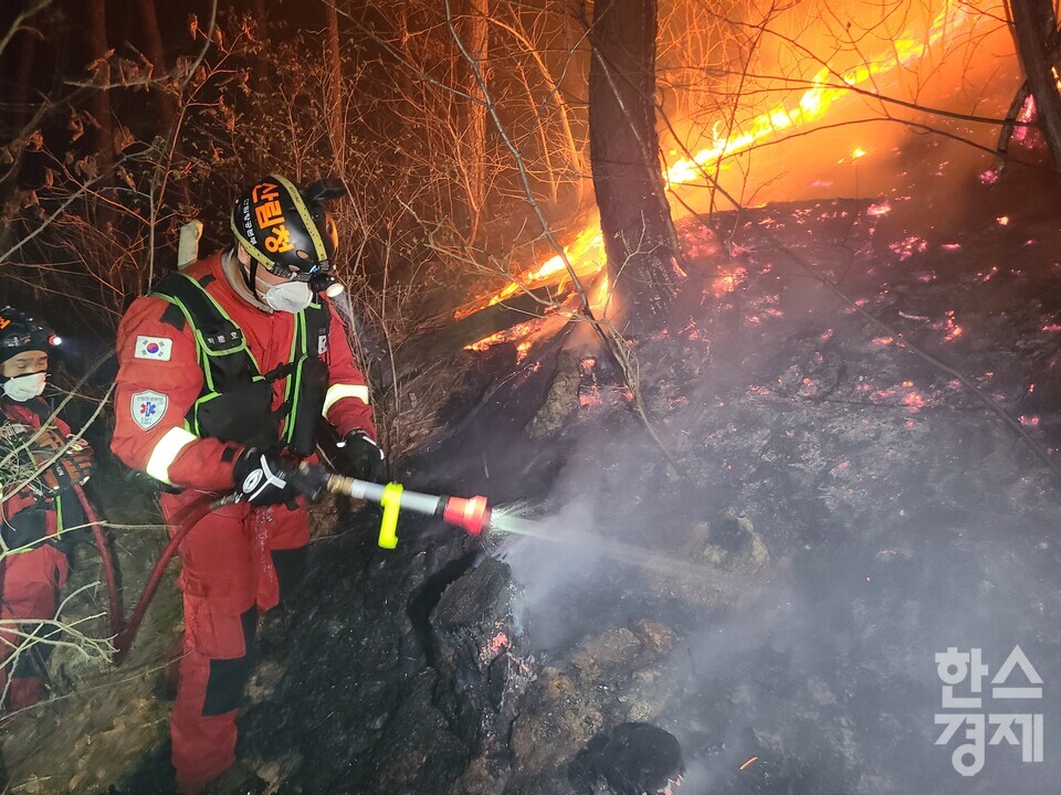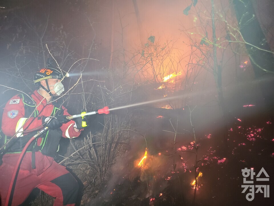 산림 당국은 이날 오전 6시쯤 날이 밝자 헬기 27대를 진화 작업에 투입했다. 지상에서는 산불특수진화대원 등 인력 1300여 명이 투입돼 쉴 새 없이 산불을 끄고 있다.