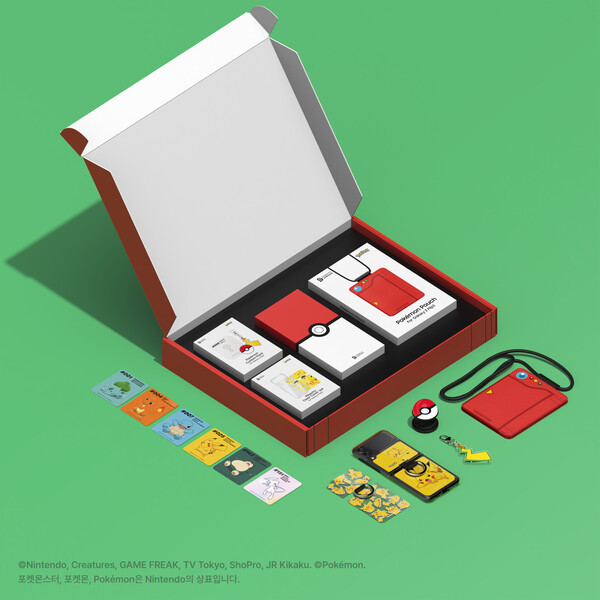 패키지는 갤럭시Z플립3 단말기에 투명커버와 액세서리를 적용했다. 포켓몬 액세서리는 피카츄 키링, 포켓몬 팔레트, 포켓몬도감 디자인의 가죽 파우치, 몬스터볼 3D 그립톡, 인기 포켓몬 스티커 5종(피카츄ㆍ파이리ㆍ꼬부기ㆍ이상해씨ㆍ파이리ㆍ푸린)으로 구성돼 있다.