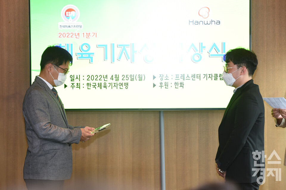 앞서 32개 회원사로부터 2022년 1분기(1월 1일부터 3월 31일까지) 체육기자상 후보작을 추천 받았고, 보도 부문 8건과 기획 부문 8건이 후보에 이름을 올렸다. 5일 5명의 심사위원이 참석한 심사위원회에서 보도 부문 2건과 기획 부문 2건의 수상작을 결정했다.