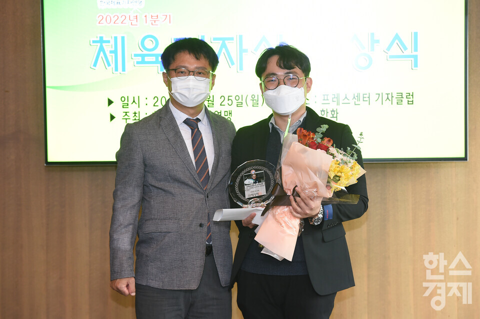 [한스경제=김근현 기자] 본지 이정인 기자가 한국체육기자연맹(회장 양종구) 2022년 1분기 기획 부문 체육기자상 수상의 영예를 안게 됐다. 양종구 한국체육기자연맹 회장은 25일 오후 서울 한국프레스센터에서 2022년 1분기 체육기자상 시상식을 열고 '한국 럭비가 간다'를 작성한 한국스포츠경제 이정인 기자에게 기획 부문 체육기자상을 전달했다.