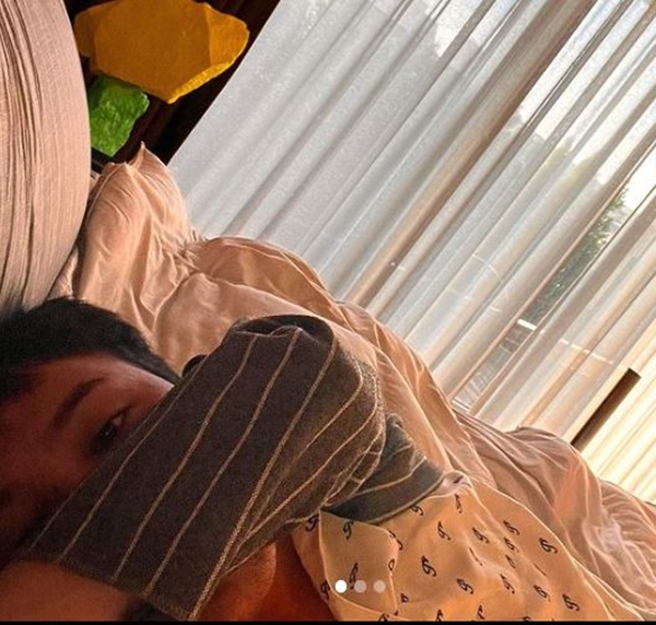 [한스경제=김정환 기자] 한 가수가 자신의 근황을 알렸다. 그는 침대에 누워 맑은 미소로 셀카를 찍고 있다.
