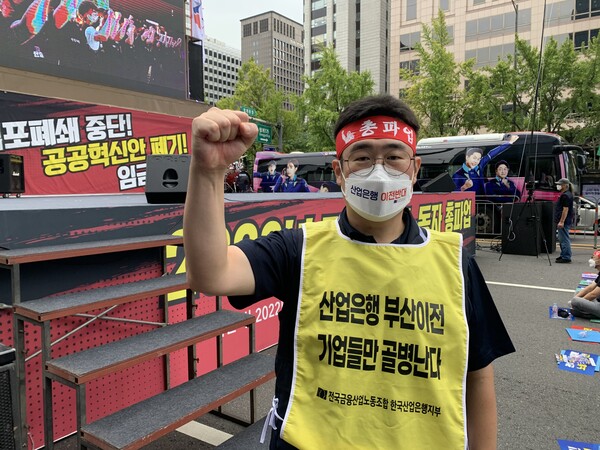 총파업 당일이 산업은행 부산 이전에 항의해 노동조합이 본점 입구에서 농성을 시작한지 101일차다. 산업은행 본연의 역할을 감안하면 부산 이전은 누구도 납득할 수 없는 정책이다. 조합원들은 물론, 산업은행 전 구성원이 사실상 손을 놓은 상태로 이전 이슈만 바라보고 있는 형국이다. 노동조합은 반드시 이를 막기 위해 필요한 모든 역량을 총동원할 것이다. 대통령을 비롯한 정권이 결정한 바라 이를 한시바삐 이행해야 한다는 산은 회장의 기자간담회 발언은 전 산업은행 구성원들의 맥이 풀리게 하는 태도가 아닐 수 없다. 총대를 메기로 했으면서 권력자에게 다시 책임을 돌리는 모습을 보며 조합원들이 무슨 생각을 하겠나.