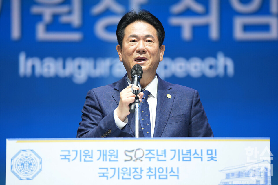 [한스경제=김근현 기자] 이동섭 신임 국기원장이 30일 오후 서울 강남구 국기원에서 열린 국기원 개원 50주년 기념식 및 국기원장 취임식에서 취임사를 하고 있다.