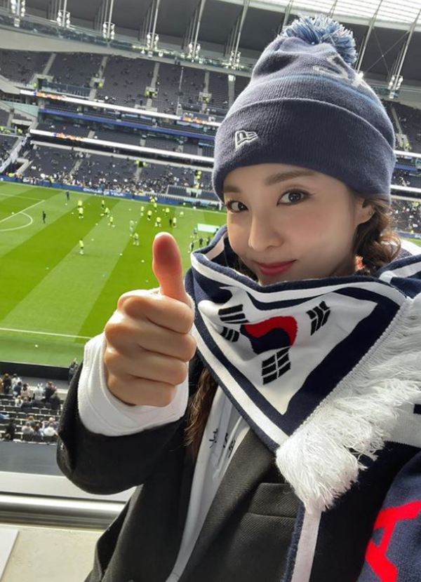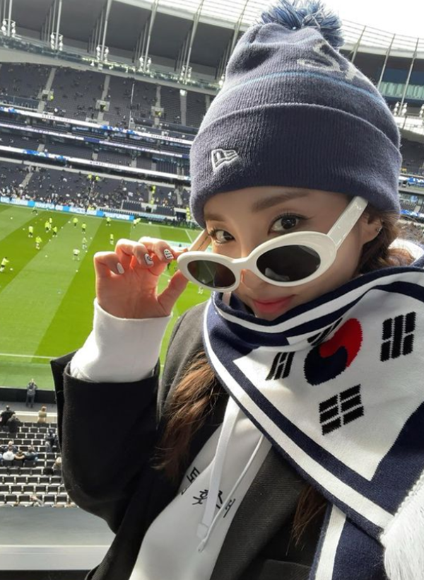 [한스경제=이수현 기자] 걸그룹 출신 가수가 잉글랜드에서 축구선수 손흥민을 응원했다.