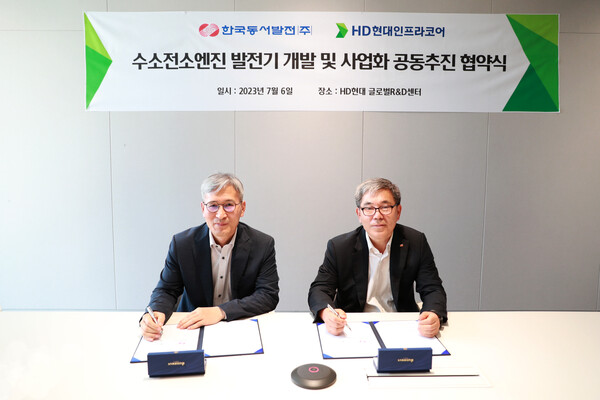 한국동서발전이 지난 6일 HD현대인프라코어와 '수소엔진발전 시장 및 산업활성화, 국산화 기술개발'을 위한 업무협약을 체결했다고 7일 밝혔다.