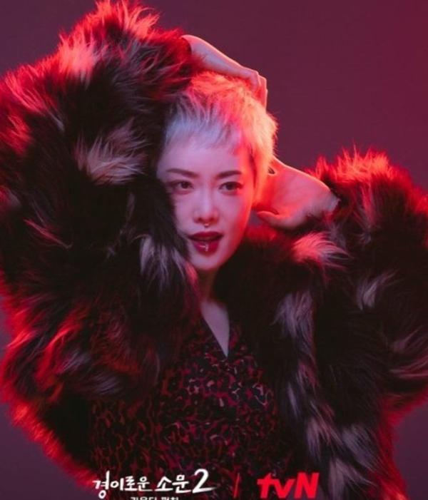 tvN '경이로운 소문'에서 악역 '겔리'를 연기하는 그는 백발 헤어스타일에 숏커트로 강렬한 인상을 남겼다. 또한 피어싱과 화려한 모피는 배경 속 조명과 어울려 강렬한 인상을 준다.