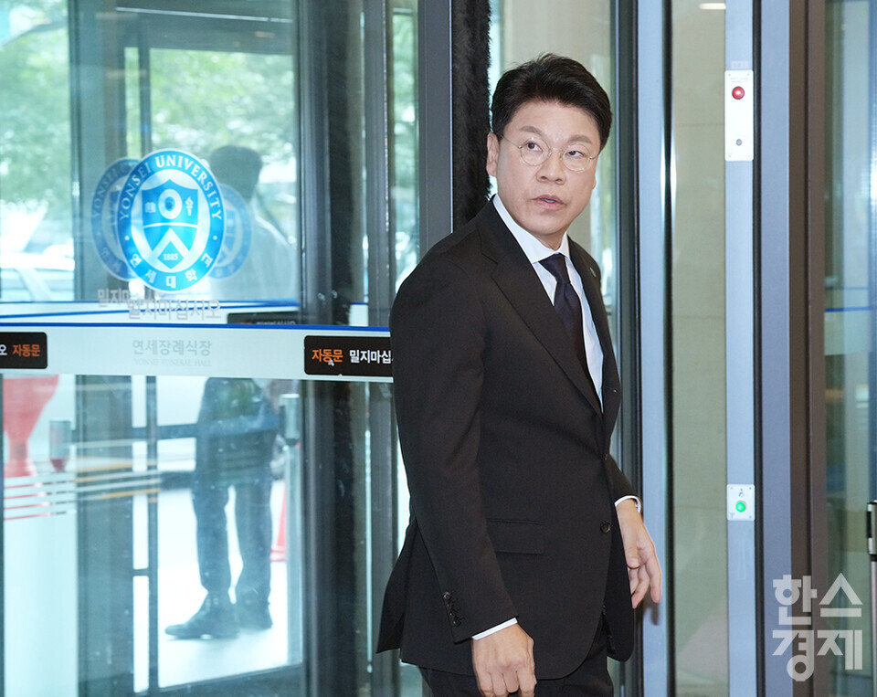16일 오후 윤석열 대통령의 부친 고 윤기중 연세대 명예교수의 빈소가 마련된 서울 서대문구 신촌세브란스병원 장례식장에 조문객들이 입장하고 있다. 장제원 국민의힘 국회의원이 로비로 들어서고 있다. /최대성 기자 dpdaesung@sporbiz.co.kr 2023.08.16.