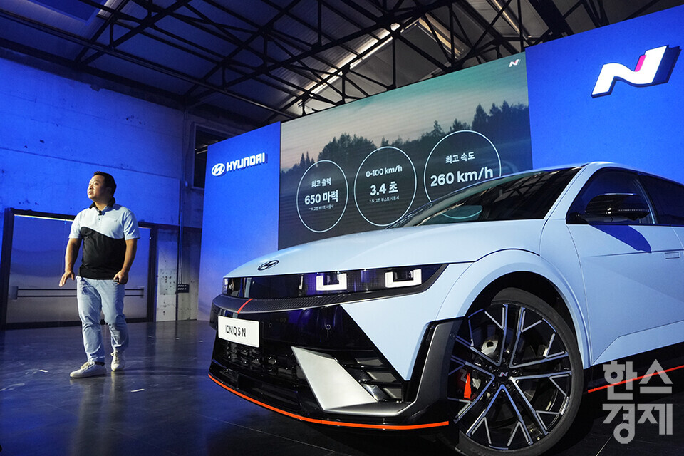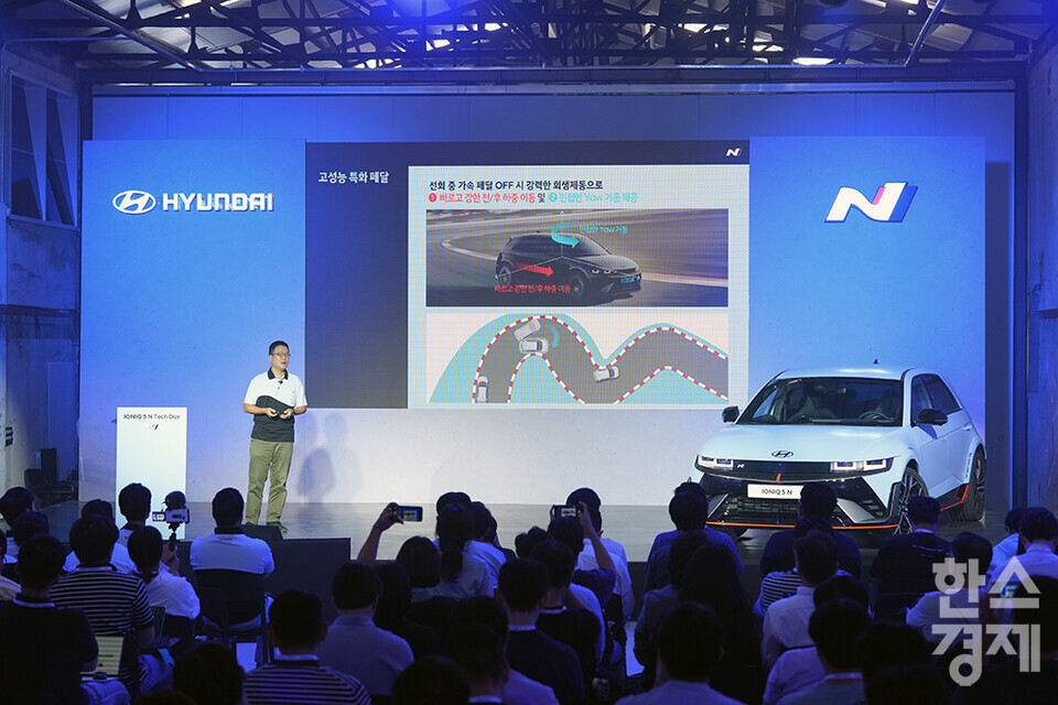[한스경제=최대성 기자] 14일 오전 서울 마포구 레이어11스튜디오에서 현대자동차 '아이오닉 5 N' 테크 데이가 열리고 있다. 이날 행사에는 아이오닉 5 N, 아이오닉 5 N 드리프트 스펙, RN22e, RM20e 및 아이오닉 5 N 부품이 전시됐으며, 아이오닉 5 N의 특화 기술이 발표됐다.