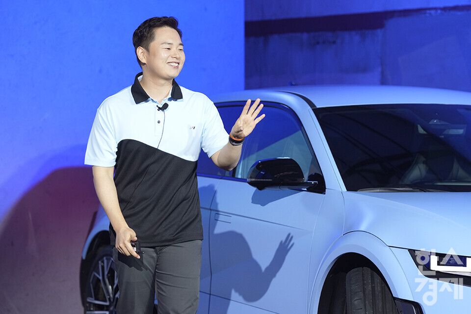 14일 오전 서울 마포구 레이어11스튜디오에서 현대자동차 '아이오닉 5 N' 테크 데이가 열리고 있다. N 브랜드매니지먼트실 박준우 상무가 N 브랜드 비전 및 방향성에 대해 발표하고 있다. /최대성 기자 dpdaesung@sporbiz.co.kr 2023.09.14.