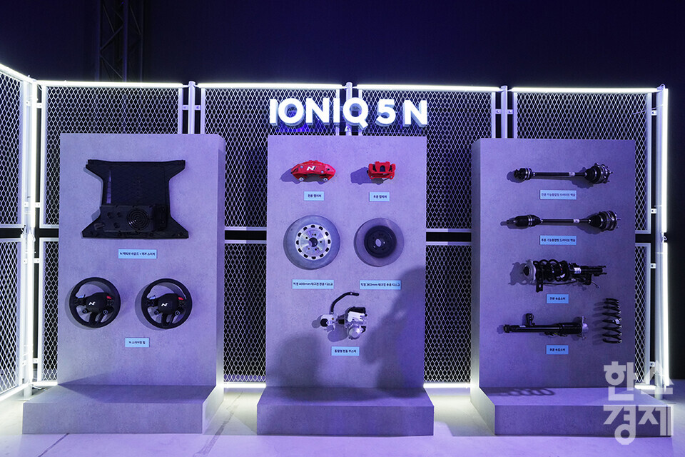 14일 오전 서울 마포구 레이어11스튜디오에서 현대자동차 '아이오닉 5 N' 테크 데이가 열리고 있다. 이오닉 5 N 부품이 전시돼 있다. /최대성 기자 dpdaesung@sporbiz.co.kr 2023.09.14.