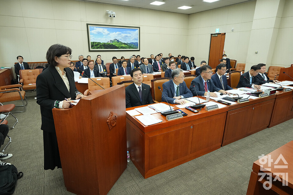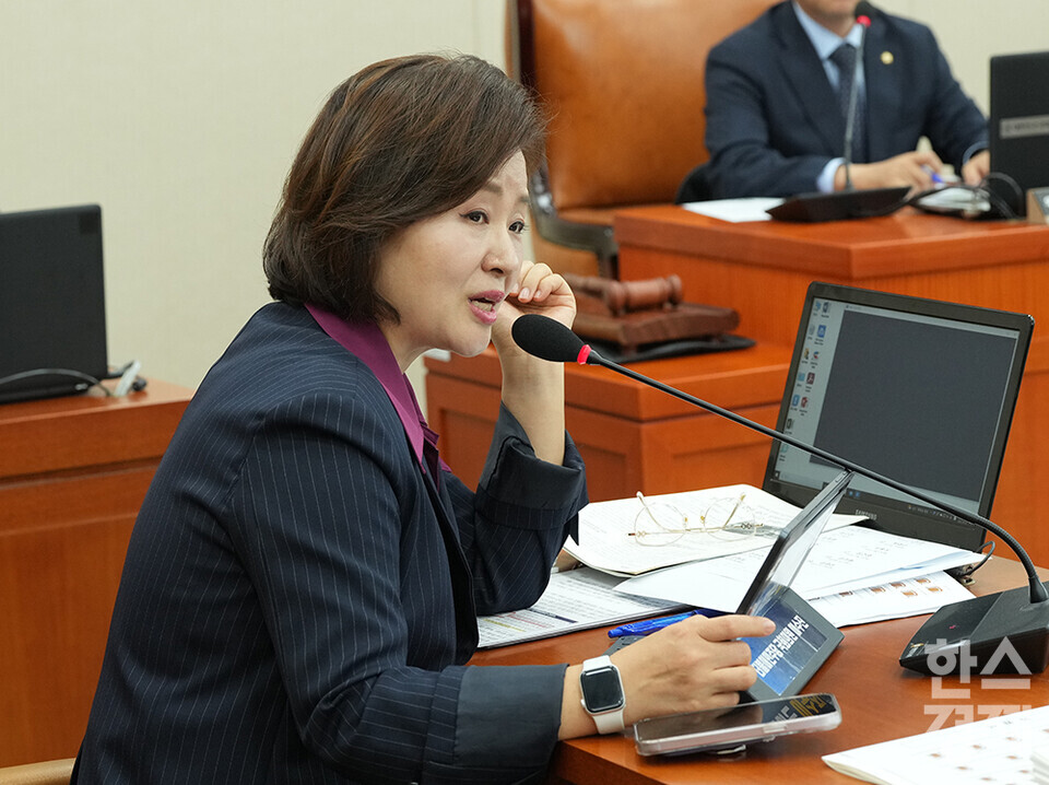23일 오후 서울 여의도 국회에서 환경노동위원회 국정감사가 열리고 있다. 이수진 더불어민주당 의원이 질의를 하고 있다. /최대성 기자 dpdaesung@sporbiz.co.kr 2023.10.23.