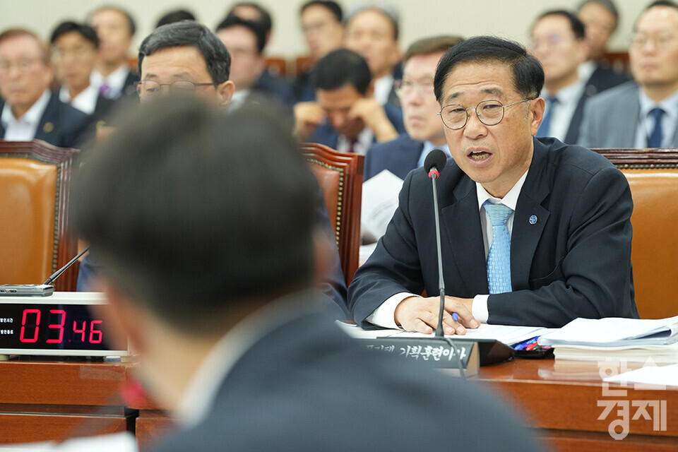 23일 오후 서울 여의도 국회에서 환경노동위원회 국정감사가 열리고 있다. 임춘건 한국폴리텍 기획훈련이사가 의원들의 질의에 답변하고 있다. /최대성 기자 dpdaesung@sporbiz.co.kr 2023.10.23.