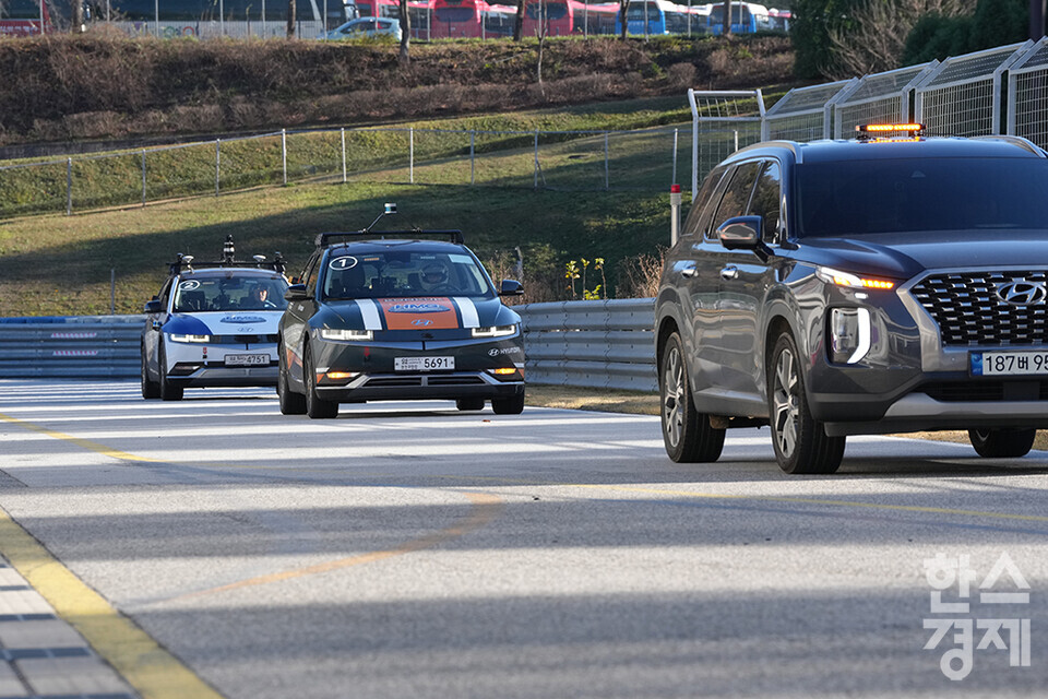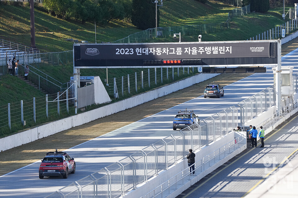 [한스경제=최대성 기자] 10일 오후 경기도 용인시 에버랜드 스피드웨이에서 '2023 현대자동차그룹 자율주행 챌린지'가 열리고 있다. 현대자동차•기아가 자율주행 연구 저변의 확대를 위해 지난 2010년부터 개최하고 있는 행사로 특히, 이번에는 세계 최초 양산차를 기반으로 한 서킷 자율주행 레이싱 형태로 진행됐다. 이날 건국대 ‘AutoKU-R’팀이 총 주행시간 27분 25.409초를 기록하며 최종 우승했다. 카이스트 ‘EureCar-R’팀은 29분 31.209초를 기록하며 2등을, 인하대 ‘AIM’팀은 경로 이탈로 완주하지 못하며 챌린지상을 수상했다.