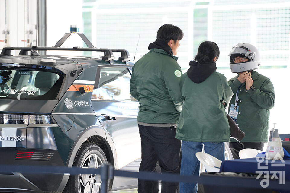 10일 오후 경기도 용인시 에버랜드 스피드웨이에서 '2023 자율주행 챌린지'가 열리고 있다. 건국대 AutoKU-R팀이 본선을 준비하고 있다. /최대성 기자 dpdaesung@sporbiz.co.kr 2023.11.10.