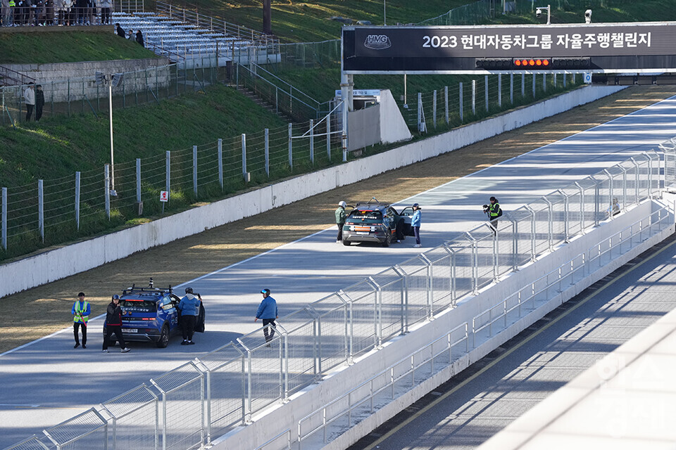 10일 오후 경기도 용인시 에버랜드 스피드웨이에서 '2023 자율주행 챌린지'가 열리고 있다. 인하대 AIM팀의 차량이 경로를 이탈해 멈춰 있다. /최대성 기자 dpdaesung@sporbiz.co.kr 2023.11.10.